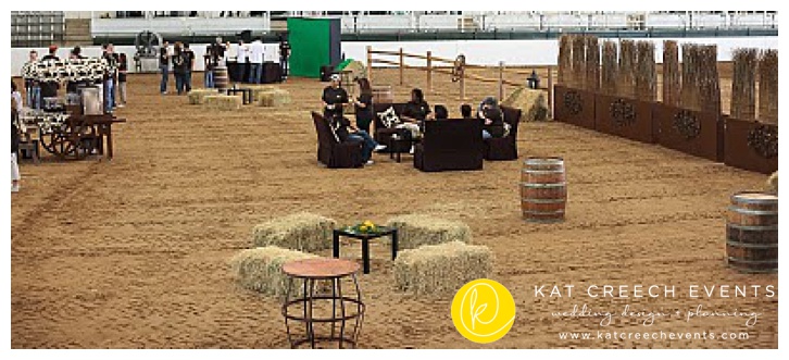 The event kicked off on the grounds of the main horse arena, where Darryl & Co provided a great backdrop of Texas decor. By combining hay bales, lounge seating, rustic split rail fencing, wagon wheels, market carts, and wooden barrels we were back in the Old West.