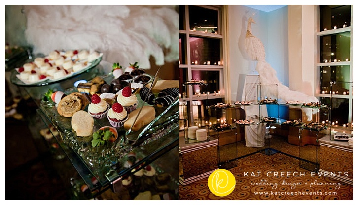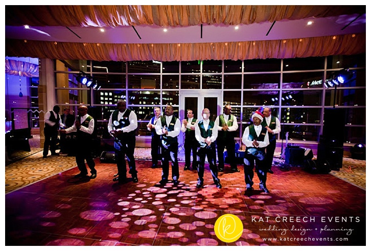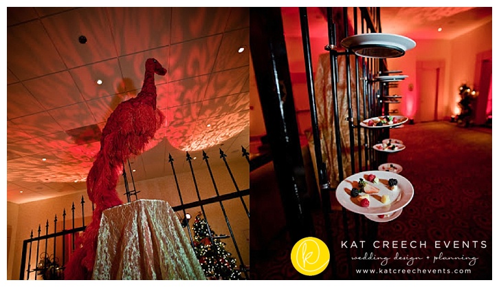 CGGVeritas Holiday Ball celebrated the season with three different themes within one amazing space. Trevisio’s amphitheater shaped restaurant is a beautiful canvas full of unlimited possibilities. With is natural layout, the opportunity to create multiple design elements within the space was immediately embraced. Working with a talented culinary crew, I also had the confidence to push the envelope and create unexpected food displays within each space for the guests to enjoy. The main area with its breathtaking cobalt blue ceiling pendants was a beautiful backdrop for the modern platinum and crystal design influence. With beautiful lounge furniture, an acrylic pipette wall for the shrimp display, and holiday songs from the Salvation Army Harbor Lights choir, the guests were welcomed as they sipped on a Prosecco holiday cocktail. The party quickly picked up with the talent of Fried Ice Cream. To the left of the main area we celebrated a white holiday with custom polar bear fur linen, wintery tree lighting graphics, and a brandy milk punch. The dessert display, which sat on a series of glass columns and shelves, was highlighted by a fantastic white peacock. Guests will be able to relive the memory through their snow globe picture keepsakes. To the right of the main area, with colors of moss, red, and gold, the guests celebrated Christmas Past. Gold ornate candelabras sat on moss taffeta holly linen, and were accented by traditional lanterns. An iron gate, highlighted with a red peacock, presented a unique imported cheese display, which was complimented by a cognac bar and wassail. It was a holiday ball that was enjoyed and will be remembered for years to come. Event Planner: Kat Creech EventsVenue: Trevisio Decor: Darryl & Co Linen: Elegant Beginnings Lighting: Impressive Entertainment Entertainment: Salvation Army Harbor Light Choir and Fried Ice Cream Photography: Steve Lee Photography Snow Globes: Best Entertainers Testimonial from Michael Lassoff, Director of Catering at Trevisio’s: “Working with Kat was truly superb. She is an over achiever to say the least. Under her supervision, our restaurant was transformed in grand proportions I have never seen before. She is an organized, creative person, detail oriented and full of positive energy. In addition to her tremendous creativity, she is also able to build on the ideas of others, a huge plus in this industry. I was also hugely impressed by her passion and knowledge of practical ways to execute an event while considering sustainability of the environment. If you are hosting an event, be it big or small, I could not recommend any planner more whole-heartedly. Her professionalism is unparalleled. She will make your event so much more than you could ever expect.”Testimonial from Melissa Shepperd, lead singer Fried Ice Cream: “WOW! Best holiday party ever! The CGG Veritas group definitely knows how to party it up! The dance floor was packed until the end…. I’m telling ya, that was so awesome for a corporate event!! I was so impressed! You did a fantastic job, Kat! Loved the theme. I know everyone had a great time….. we talked to a lot of people that night and heard tons of wonderful comments and feedback on everything.” |