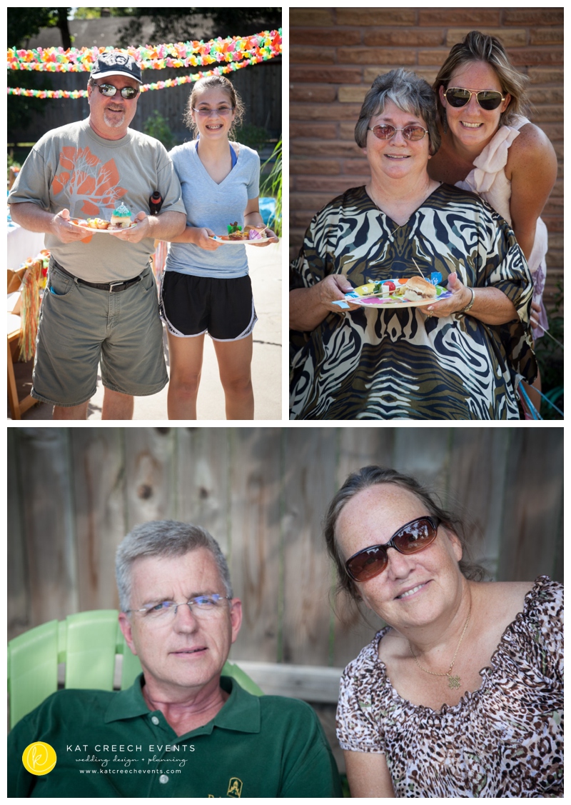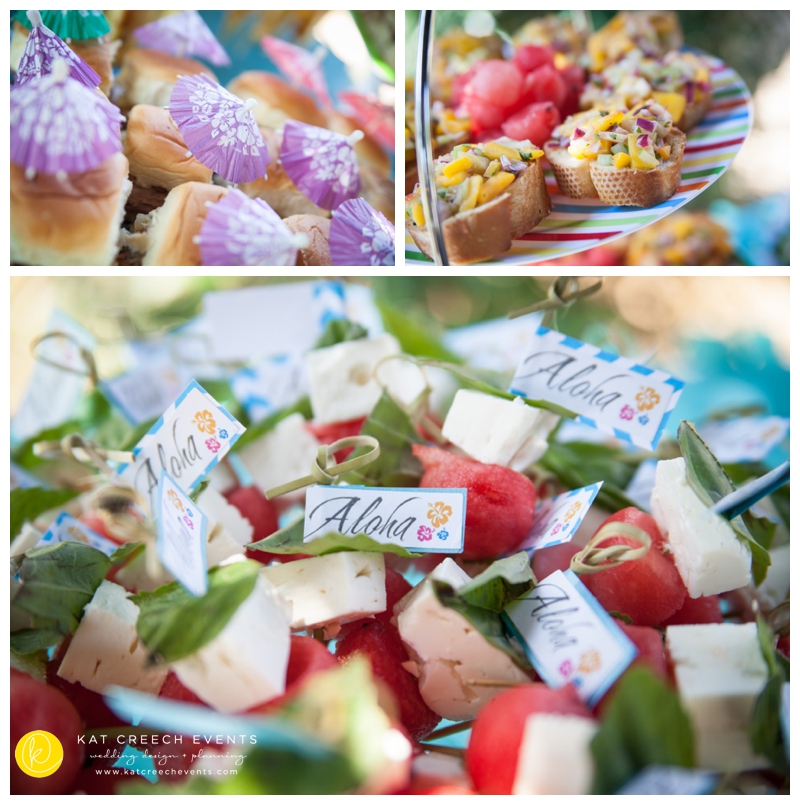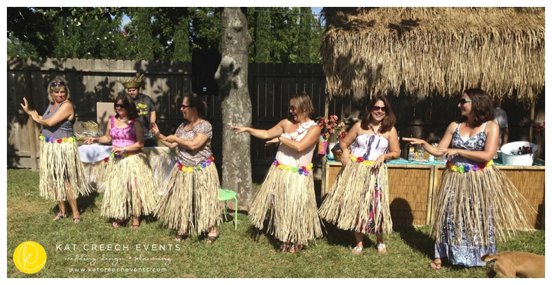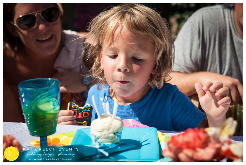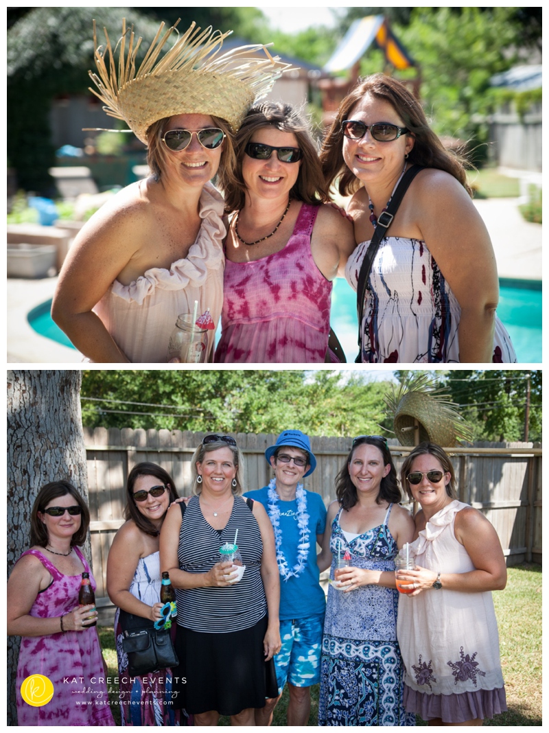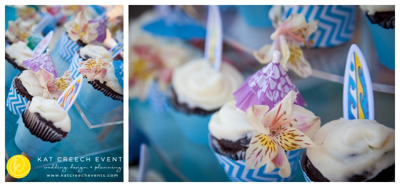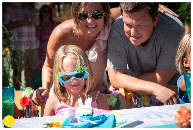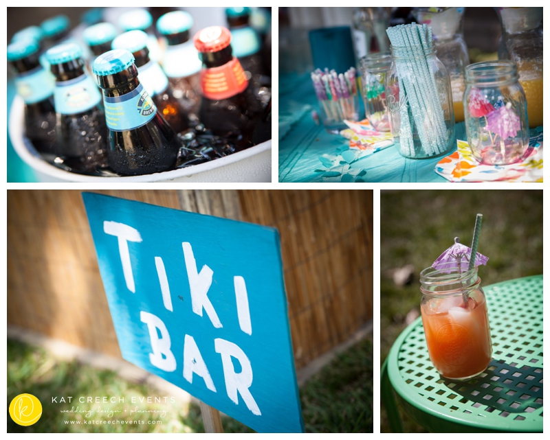 Madison + Austin celebrated eight and four with a luau themed birthday party filled with so many little details, you might have felt like you were transported to the big island. The family-style table accented with leis, hula skirts, and tiki goblets paired with surf boards and shades was just the right touch. While guests enjoyed the feast, which included mini pulled pork sandwiches, grilled pineapple, watermelon-feta skewers, mango-pineapple bruschetta, and fruit cups there was a fabulous Tiki Bar with traditional Mai Tai’s and Kona brew to quench your thirst. The dessert spread {our favorite part} was a all about the chocolate-chocolate cupcakes and decorative cookies from Michael’s Cookies Jar. For the Luau fun, there was directional signage and stations to enjoy. From coconut bowling to limbo and from hula to enjoy the “beach” {pool} it was le’ale’a ho’ohoaloha “good times with good friends.” The ladies even performed a traditional hula dance pool side. Too funny! The party advice: details, details, and details….it makes all the difference in any party. Spending a little time to create the accents is what I enjoy the most and is guaranteed to be loved by the party guests. Plus, it gets the kiddos involved and that is just fun! But, what really makes all the difference? Great friends! We are fortunate to have so many! kat creech events: event design, diy, food : | michael’s cookie jar: decorative cookies | darryl + co: tiki bar | elegant beginnings: linens | lg entertainment: dj | steve lee photography: photos