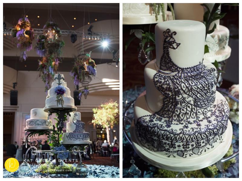 Nicole and Cham’s mystical garden wedding at Wortham Theater was based on a dreamy mystical garden filled with lush jewel tone florals, suspended birdcages, spanish moss, broach bouquets, stain-glass windows, and 20′ manzanita trees. Oh, and let’s not forget about the 7′ floral peacocks watching over the night. Epic. I would be remised if we do not ohhh and ahhhh over the wedding gown and those shoes. Indeed breathtaking and bold…just the way Nicole is. With family-style tablescapes accented with gold candelabras, lighting trusses spanning over 30′ in the air, a 16’x30′ cupcake wall to accent Cham’s love for legos and Nicole’s passion for stain glass windows, the space was filled with drama. And, not the bad kind of drama…the kind of drama that keeps you wanting more. The kind of drama this once stage performer needed to represent the passion of the performing arts. All the way down to the Renaissance friends performing for the guests. Cheers to Mr. and Mrs. Benvenutti kat creech events: design and planning | altf photography: photography | christ church cathedral: ceremony: | wortham theater: reception venue | aramark: cater | bright start productions: lighting | edible designs by jessie: wedding cake | petite sweets: cupcakes: | darryl + co: birdcages, cupcake wall, stain glass windows | lg entertainers: reception music | over the top: linens | Flora & Eventi: floral design | smile booth: photo booth | swift + co: rentals, dance floor | your beautiful face: hair and make up | weddings by debbie: wedding gown | jos a banks: suits |