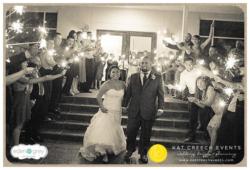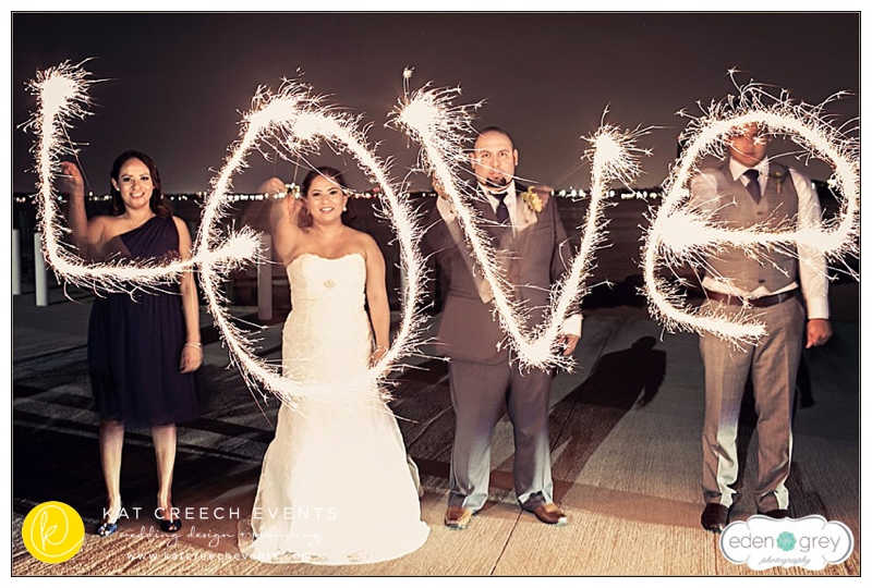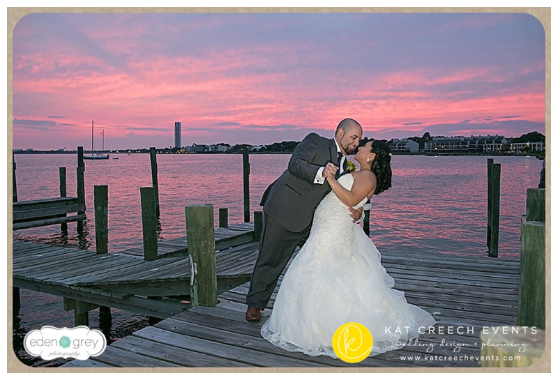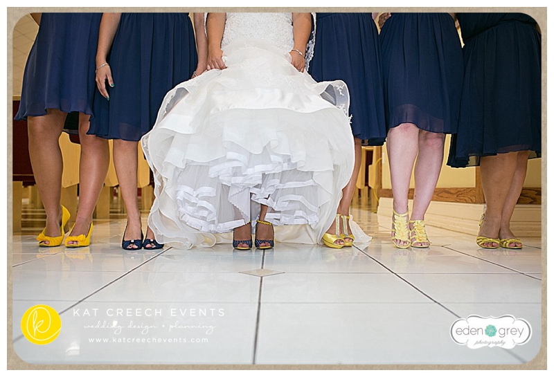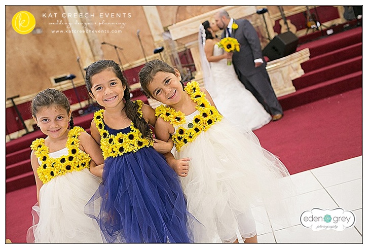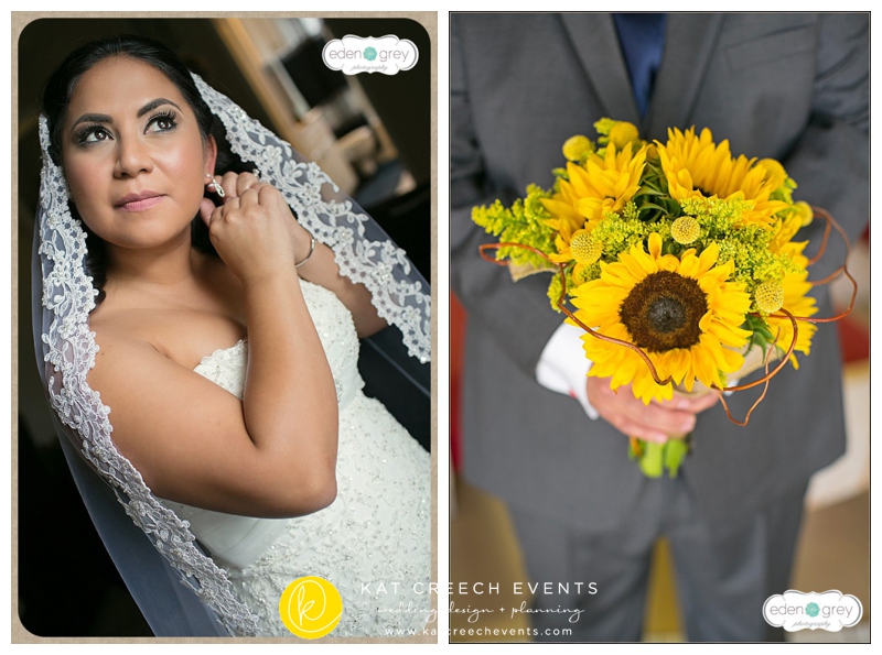 Gladis + Phillip have so much fun everywhere they go, whether it be tailgating for a favorite sports team or hanging out with pals, they knew they wanted a great party with their family and friends to celebrate their union as husband and wife. They certainly got their wish at their wedding celebration at The Admiral Room. Sunflowers were destined to be a part of this sunny couple’s special day. Navy accents played well with the yellow and could be found in not only the floral components but also the bridesmaids’ yellow shoes and the groomsmen’s crazy socks. The ceremony was at their church in Pasadena and incorporated an old hispanic tradition called ‘the lasso’, which is an outward symbol of their marriage and physically joins the two with a rope. The evening continued at The Admiral, where the room overlooks Clear Lake’s Endeavor Marina. A fun element of decor was the groom’s trophy for winning a Fantasy Football competition, which he paraded around at several points during the evening. Other decorative details included candle-filled lanterns adorned with sunflowers as well as mason jars that paired as a party favor for guests. During the reception, guests enjoyed the photo booth, getting down on the dance floor and playing flip cup with the bride and groom before departing with fun sparklers to send the couple off in style. Wishing the bride and groom many years of wedded bliss! wedding coordination:: Kat Creech Events | ceremony venue:: Iglesia Fuente de Agua Viva | reception venue:: The Admiral at Endeavor Marina | photography:: Eden Grey Photography | DJ:: Kaotic Promotions | cake/cupcakes:: Viva La Cake Balls | floral:: HEB Blooms | hair/makeup:: Facemaker Houston | catering:: Rudy’s BBQ | bartending:: Galaxy Bartending | photobooth:: Snap! Photobooth